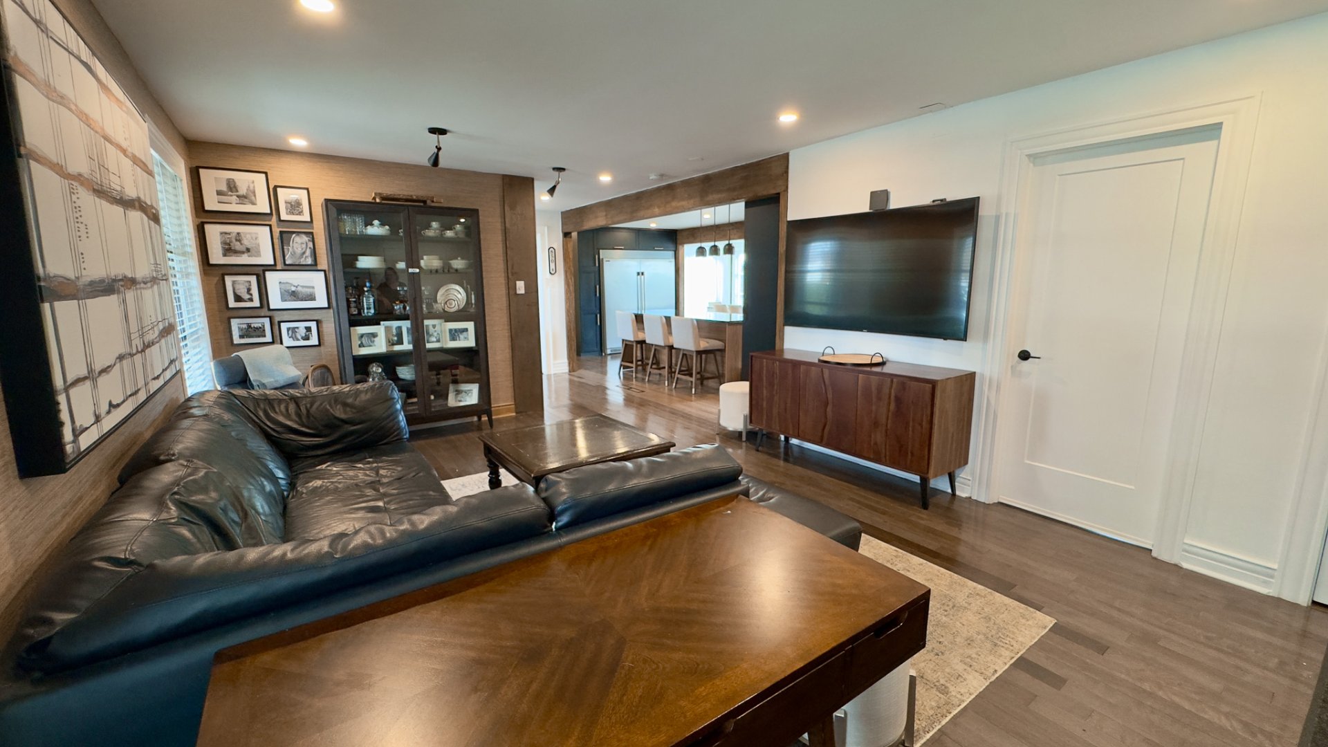 La maison principale : comprend trois chambres, un garage, une piscine et un spa. La section intergénérationnelle : dispose d’une entrée indépendante, d’une aire de vie au rez-de-chaussée, d’un stationnement privé ainsi que de deux chambres au sous-sol.