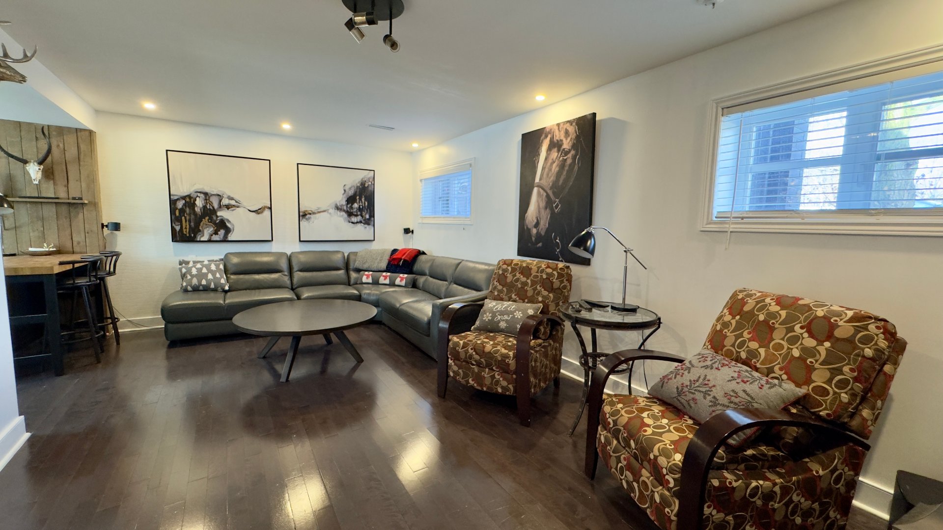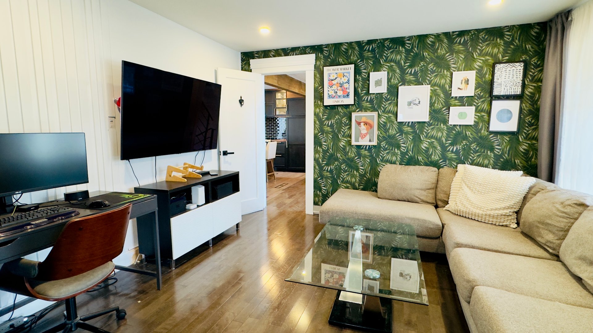 Les deux unités sont reliées au sous-sol et au rez-de-chaussée, permettant une utilisation flexible des espaces, notamment la deuxième chambre et le salon du rez-de-chaussée de l’intergénérationnelle pourrait être utilisées par les occupants de la maison principale. (voir plan à la section photo)